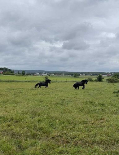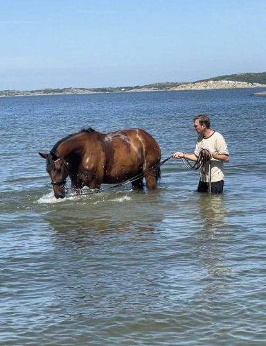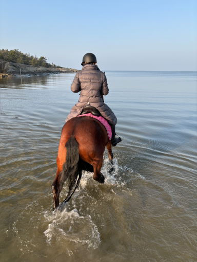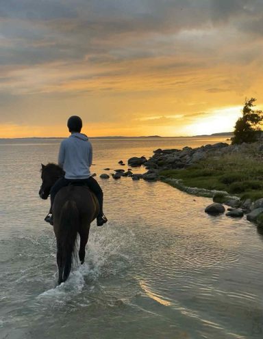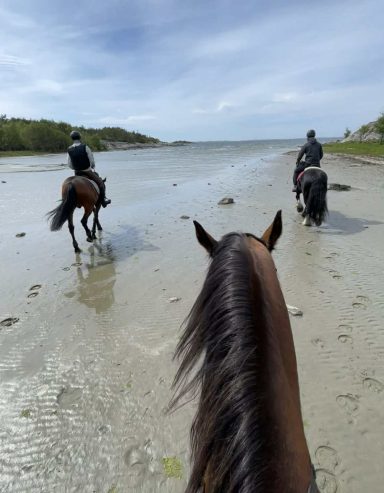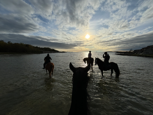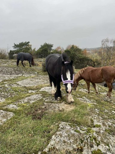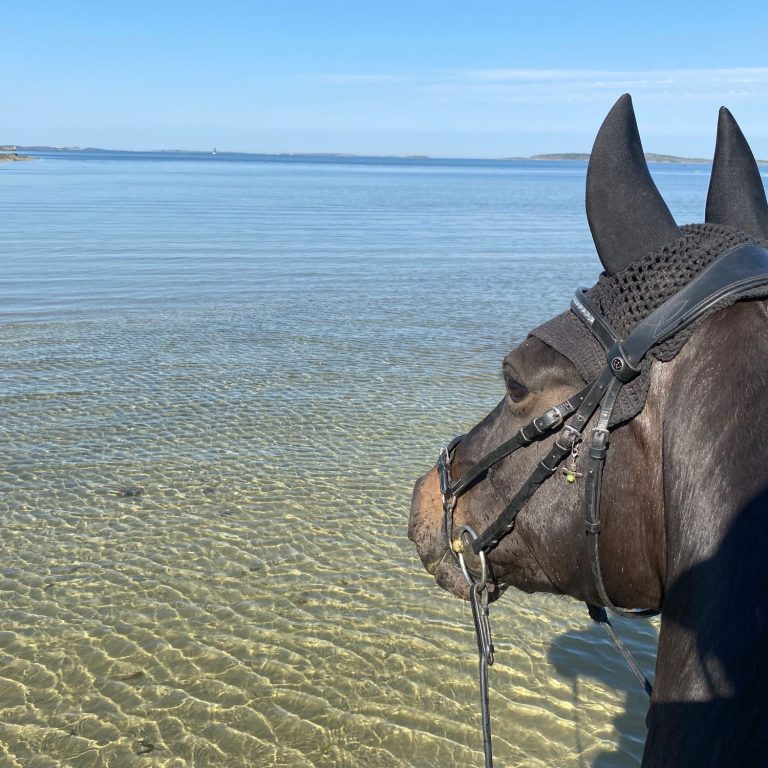Hos oss har hästarna lång utevistelse i flock i stora kuperade hagar. Vi har goda träningsmöjligheter med eget ridhus, ridvolt och närhet till havet.